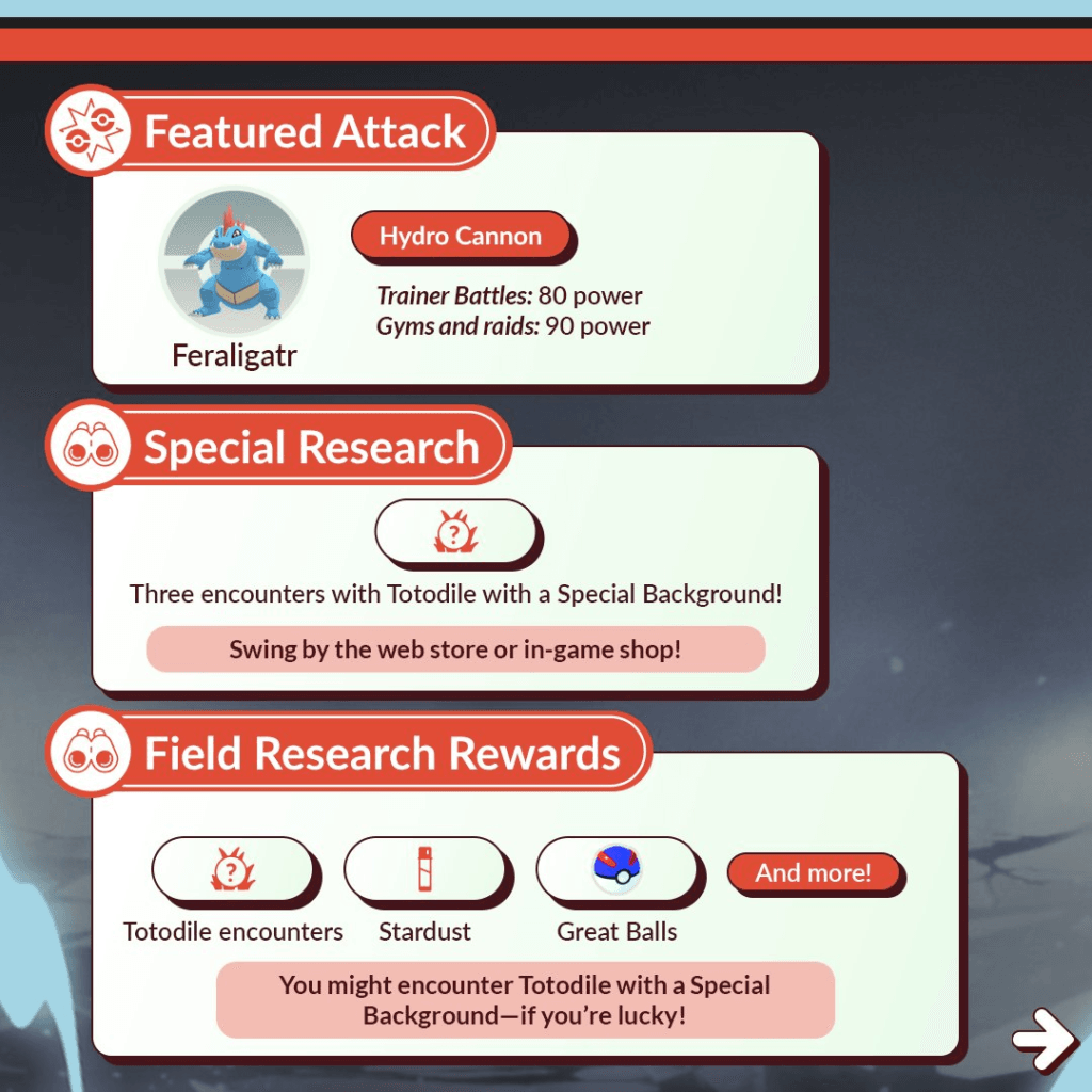 El evento se llevara acabo el 22 de marzo y estará protagonizado por Totodile, los cuales tendrán mayor probabilidad de conseguirse shiny.