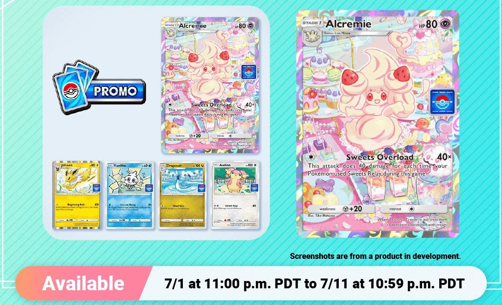 Comienza el evento botín de Alcremie para Pokémon TCG Pocket, estará disponible del 2 al 12 de julio en el cual se incluirán cartas promocionales en sobres que se obtienen al jugar partidas individuales, como también la carta promocional de Alcremie.