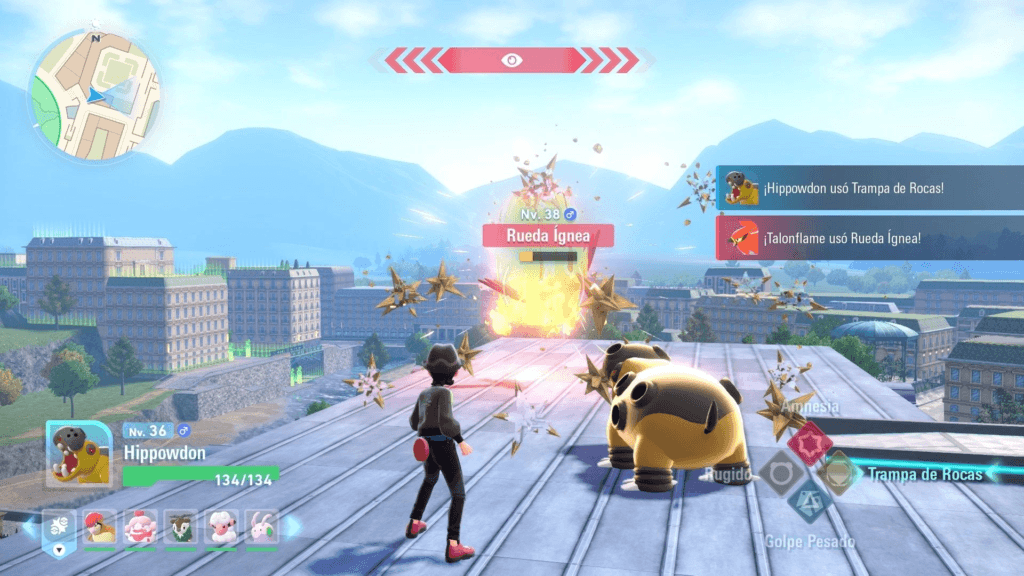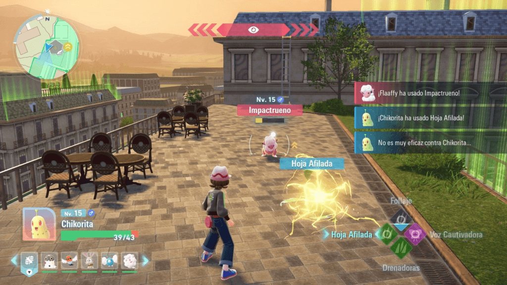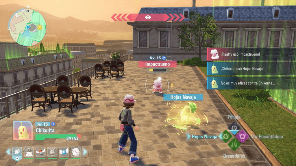 En los combates de Leyendas Pokémon: Z‑A, los Entrenadores y sus Pokémon podrán moverse de un lado a otro en tiempo real, y los Pokémon utilizarán sus movimientos cuando sus Entrenadores lo ordenen.