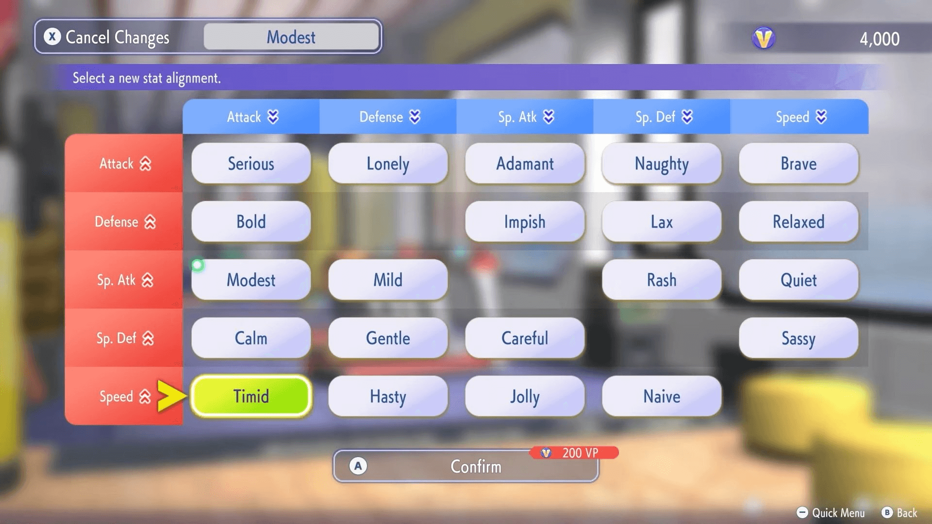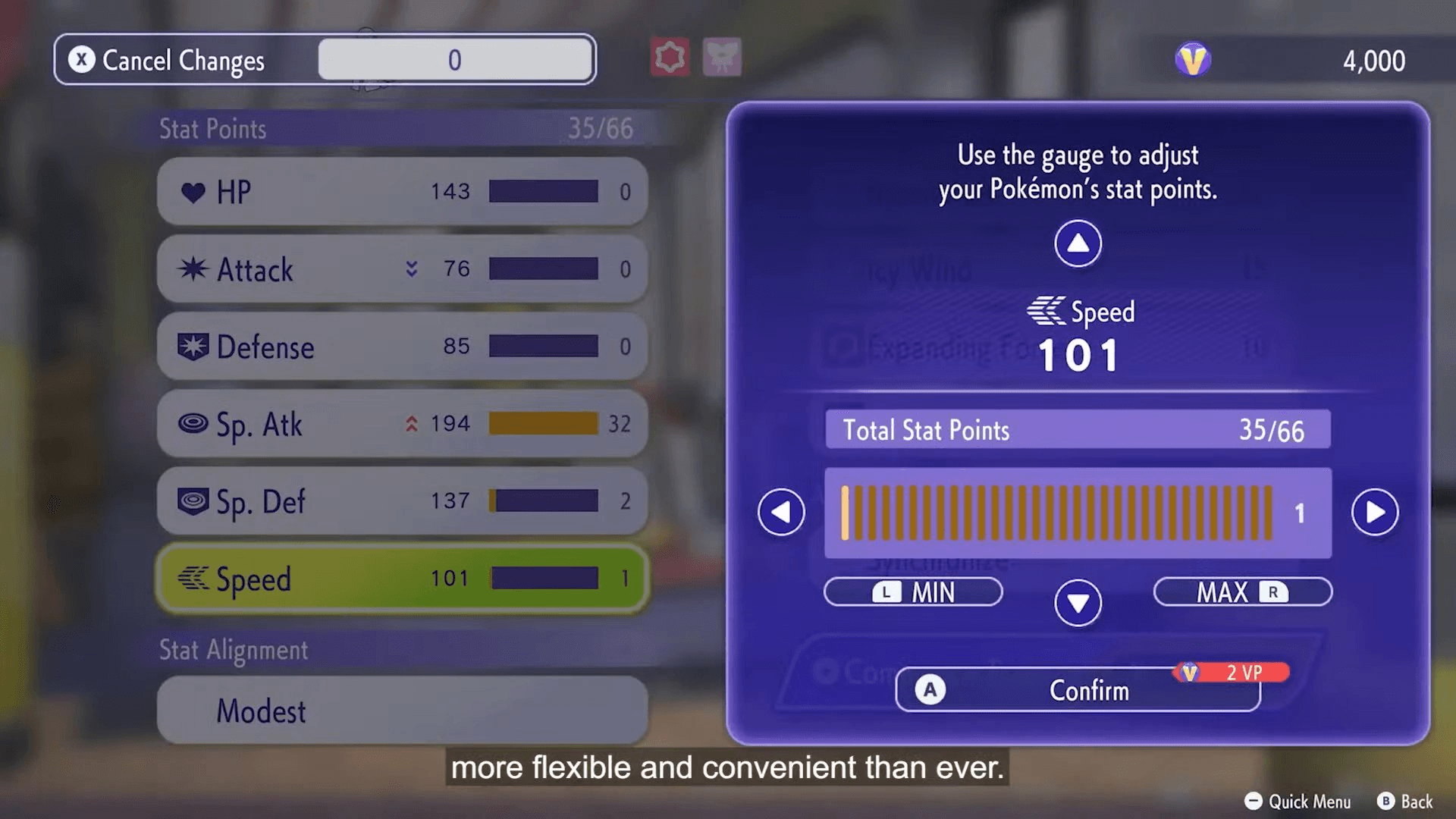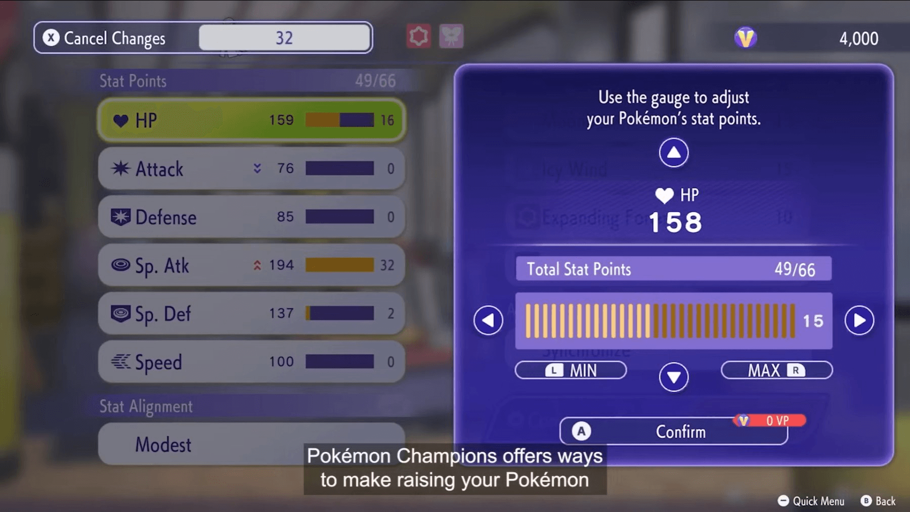 Mas imágenes de la personalización de estadísticas, naturalezas y habilidades dentro del juego